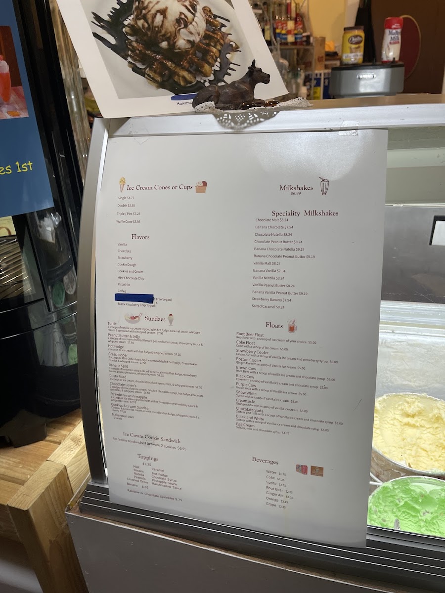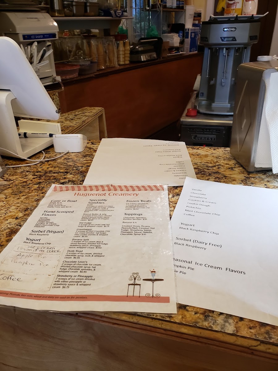 Sampling the menu at Huguenot Creamery on 78 Main St, New Paltz, NY, is a delightful journey through classic and inventive ice cream creations. Their selection of flavors-Vanilla, Chocolate, Coffee, Strawberry, Cookies & Cream, Cookie Dough, Pistachio, and Mint Chocolate Chip-provides something for every palate. Sundae lovers can indulge in treats like the Turtle, Peanut Butter & Jelly, Hot Fudge Grasshopper, and Banana Split, each bursting with rich toppings. Specialty milkshakes such as the Chocolate Malt, Banana Chocolate, Chocolate Nutella, Chocolate Peanut Butter, and Banana Chocolate Nutella elevate the experience with creamy decadence. For a nostalgic twist, floats like the Root Beer Float, Coke Float, Strawberry Cooler, Boston Cooler, and Brown Cow offer refreshing carbonation alongside ice cream. Lighter fare and snackable options, including Ice Cream Sandwiches, complement the menu, while simple beverages like Water, Coke, Sprite, Root Beer, and Ginger Ale round out the offerings. Add-ons like Chocolate Sprinkles and Banana allow patrons to customize their desserts further. Overall, the menu strikes a perfect balance between timeless favorites and playful innovations, making Huguenot Creamery a standout destination for sweet indulgence.